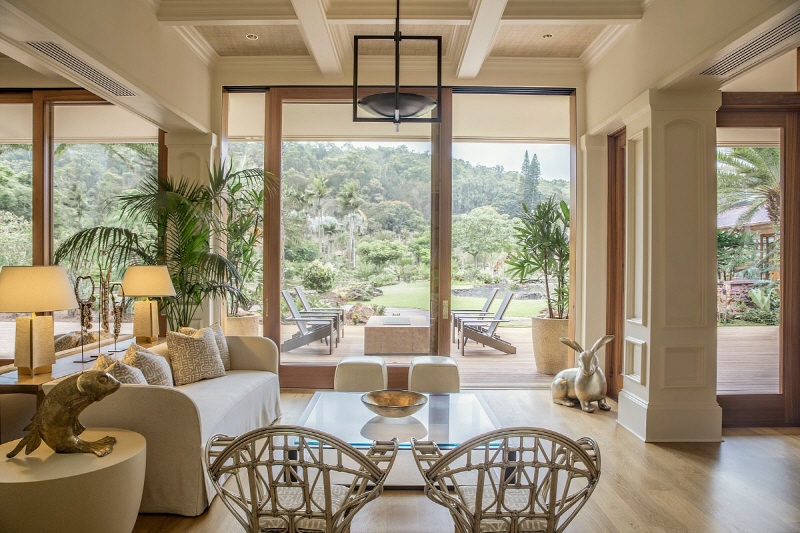 포시즌 라나이 로지 앳 코엘레 호텔은 네오 빅터리안 스타일의 우아한 호텔로써 라나이 시티의 낮은 언덕에 위치한 고풍스럽고 우아한 호텔 이다, 융단처럼 펼쳐진 초록빛 잔디와 백조가 떠다니는 잔잔한 연곳, 향기로운 풀냄새와 적막을 깨는 새소리가 따스하게 주변을 감싼다, 로비의 벽난로와 피아노, 직접 그려 넣은 라이브러리의 천장과 바닥이 "진정한 품격이란 이런것" 이라고 말해주는 듯하다, 객실 천장에 한가로이 돌아가는 대형 선풍기와 예술작품을 활용한 인테리어 또한 고급스럽다,